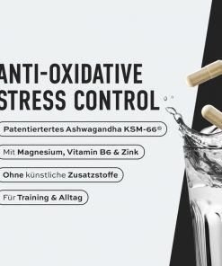 Ashwagandha (Withania somnifera D.)-Wurzelextrakt, Magnesiumcitrat, Kapselhülle (Überzugsmittel (Hydroxypropylmethylcellulose)), Zinkbisglycinat, Vitamin B6 (Pyridoxal-5’-Phosphat).