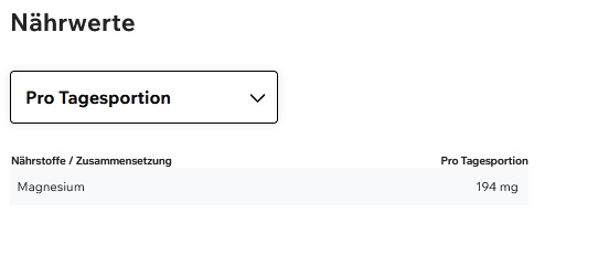 Magnesiumbisglycinat, Füllstoff (Mikrokristalline Cellulose),Trennmittel (Magnesiumsalze der Speisefettsäuren), Kapselhülle (Überzugsmittel (Hydroxypropylmethylcellulose)).
