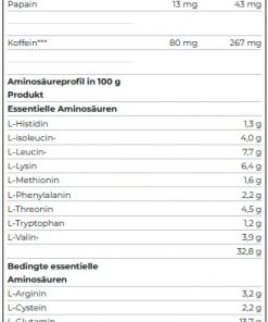 Trinke 1 Portion am Tag und zwar nach dem Training, an Ruhetagen zu einem beliebigen Zeitpunkt des Tages. Mische 30g (3/4 Messlöffel) Pulver mit 250ml Wasser für 1 Portion.