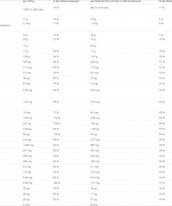 Mische 55g (ca. 5 gehäufte Esslöffel) Pulver je nach Geschmack mit ca. 250ml flüssigen, kalten Lebensmitteln wie Wasser, Magerjoghurt, Magerquark, Kefir oder entrahmter Milch. Der fertige Shake sollte nicht zu