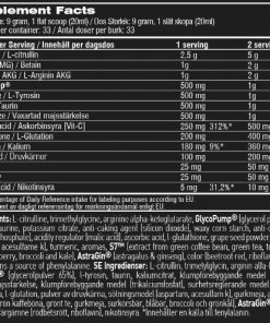 • Mit zum Beispiel L-Citrullin, L-Arginine AKG und Betain (TMG)