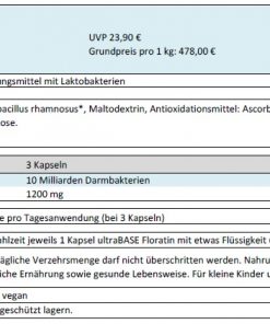 Das ultraSPORTS ultraBASE Floratin liefert 10 Mrd. Bakterien (Lactobacillus rhamnosus) pro Tagesanwendung von 3 Kapseln.