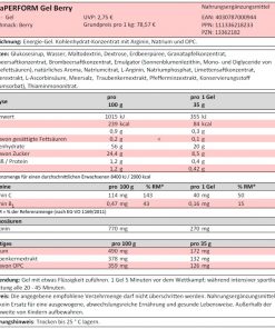 Bei dem ultraSPORTS ultraPERFORM ultraGel handelt es sich um ein Gel mit einem optimierten Mix aus Maltodextrin bzw. Dextrose, Fruchtkonzentraten und Arginin.