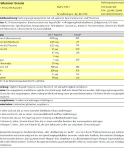 Bei den ultraSPORTS ultraRECOVER Greens handelt es sich um Kapseln mit Mangan, Selen, Jod, Zink, ChromVitamin B2 und Vitamin A sowie D. Mit Kelp-Meeresalgen.