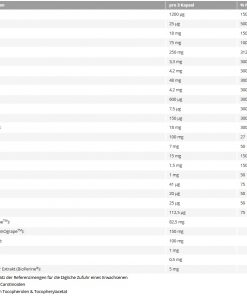 - Mit Cholin (VitaCholineTM), Traubenextrakt (VinOgrapeTM), Pinienkernextrakt, Lutein, Lycopin, Schwarzer Pfeffer Extrakt (BioPerine®)